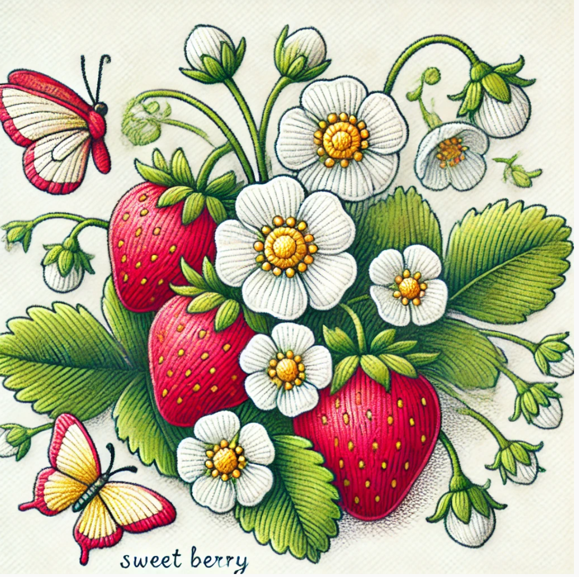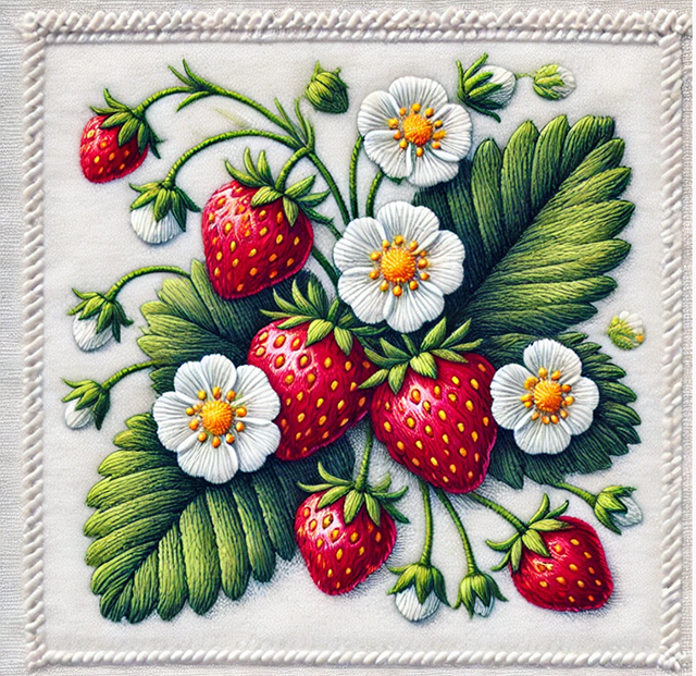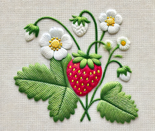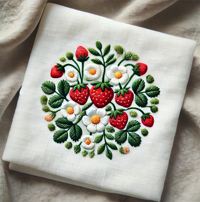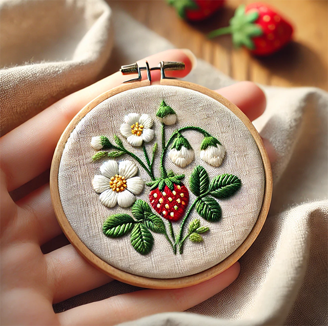 いちごの刺しゅうを