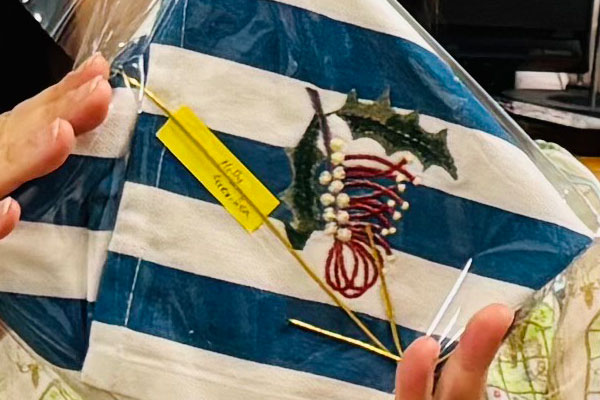 刺繍をいれておられて