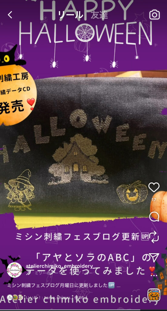 Instagramの投稿の刺繍を