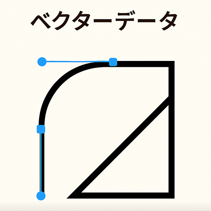 ベクターデータ…「ここからここまで線を引く」「このカーブで結ぶ」という数式の命令で形を記憶。拡大しても境界がくっきり。