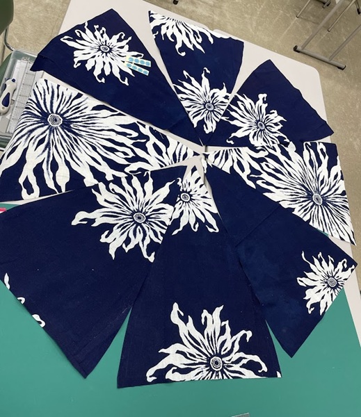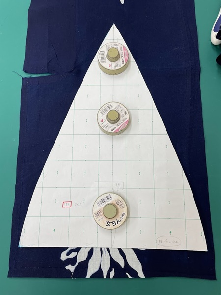次は隣同士を外表にして縫って中表にして出来上がり線を縫う