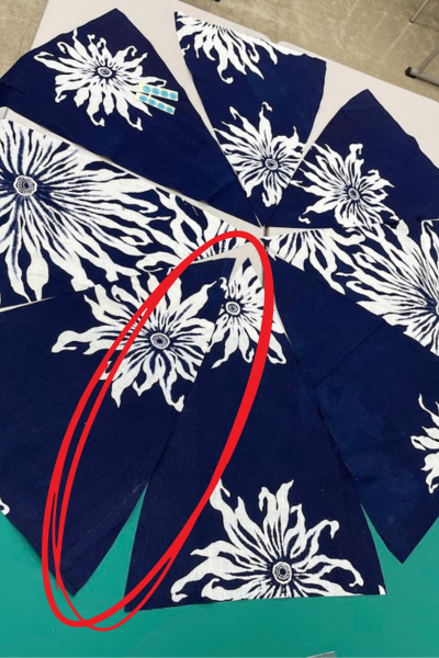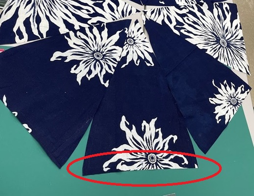 2枚と2枚を外表にしてぬい中表にて出来上がり線をぬいます。