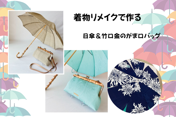 「着物リメイクで作る日傘&竹口金のバッグ」に挑戦