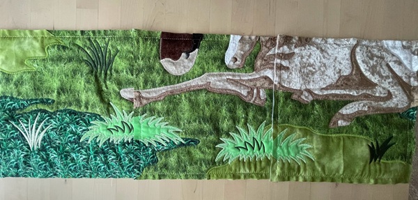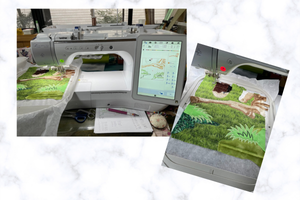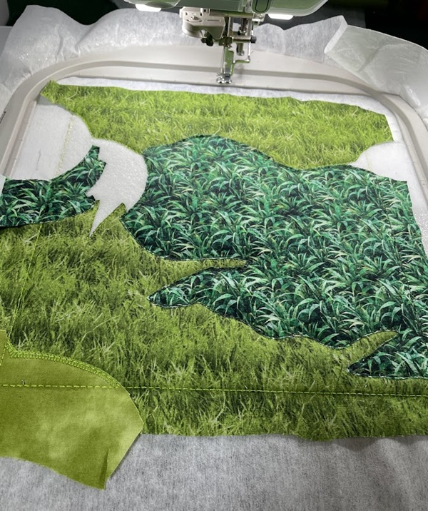 生地の上にリード線を刺しゅうして余分な生地をカットして