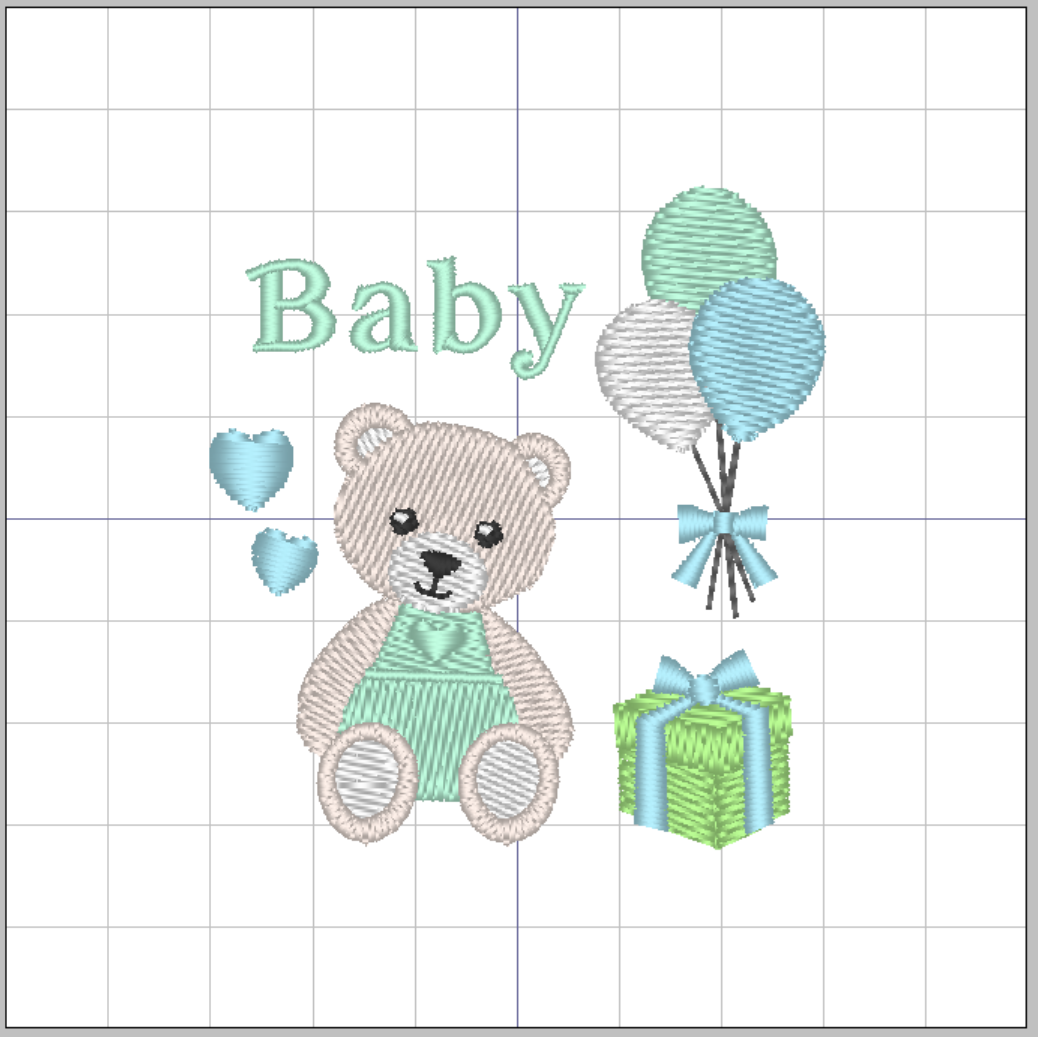 くまちゃん、プレゼント、風船などの世界観で表現したデザインです。