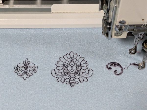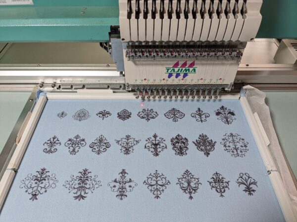 本日は『ダマスク模様』の刺繍データの試し縫いを致しました。