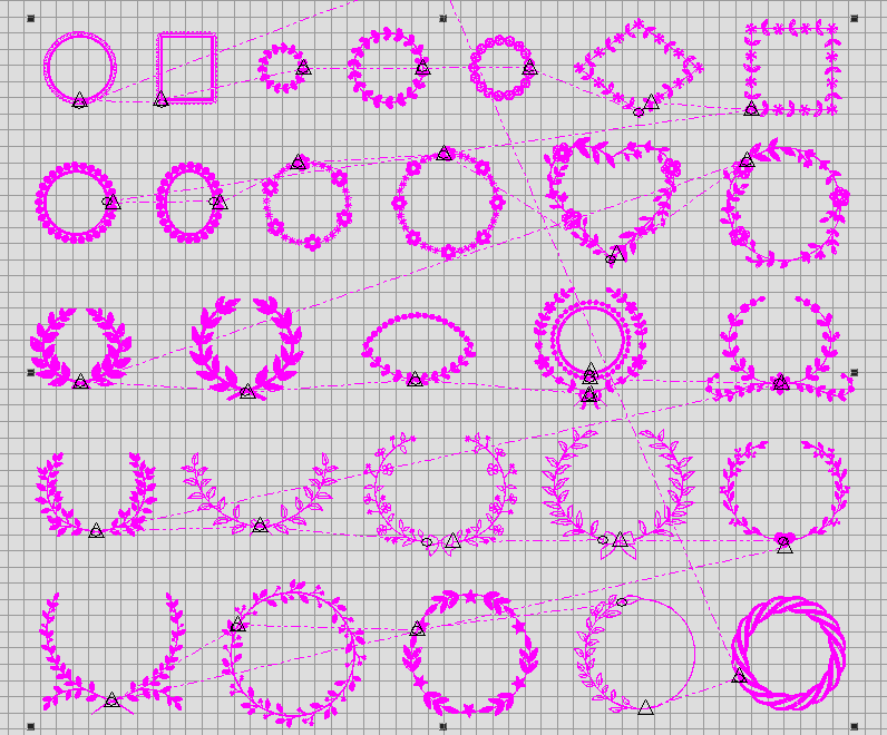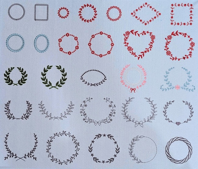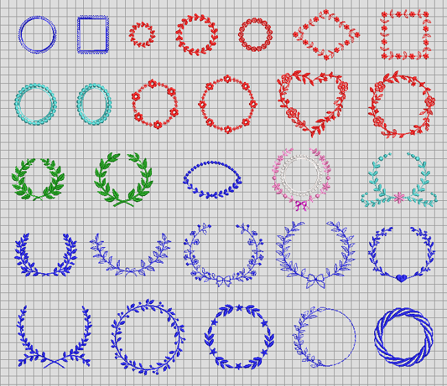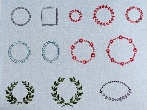 フレームや月桂樹(げっけいじゅ)の刺繍データです。