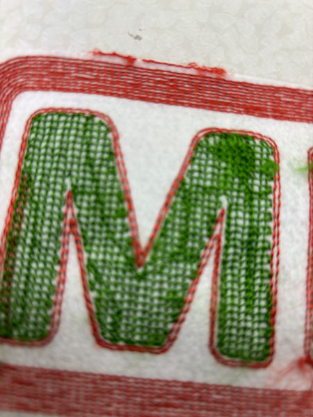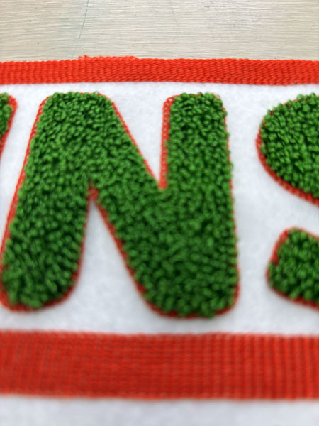 文字の刺繍もすごいのですが、赤い枠の刺繍も特殊な刺繍のようです。