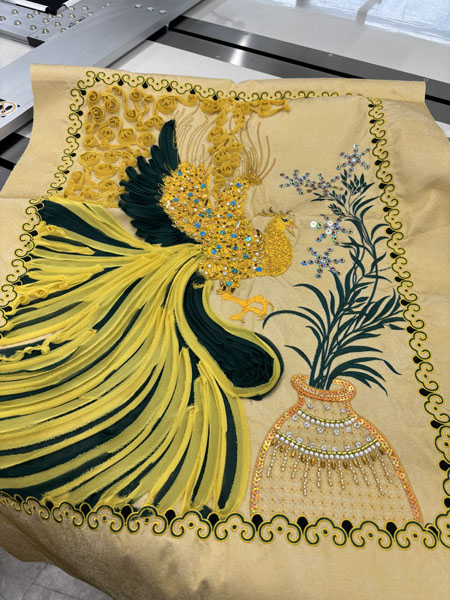 これまた芸術的な刺繍です。 すごいですよね~、ミシン刺繍って本当にいろんな表現ができるんですね。