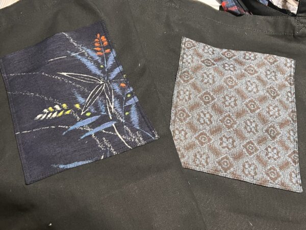 裏はポケットに、大島紬の着物の解き生地