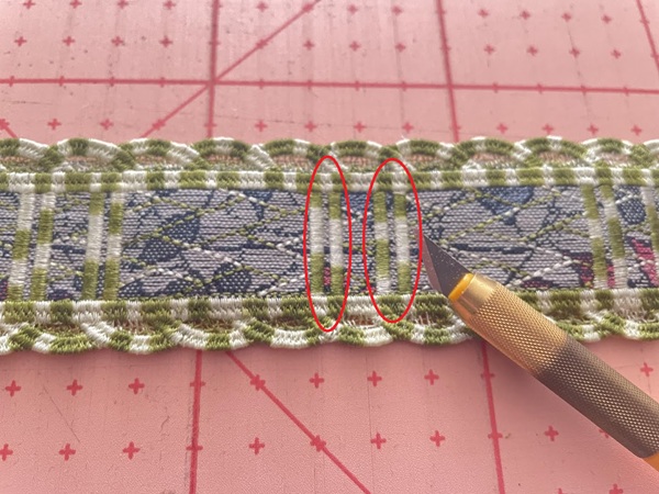 リボンを通すのでカットします。