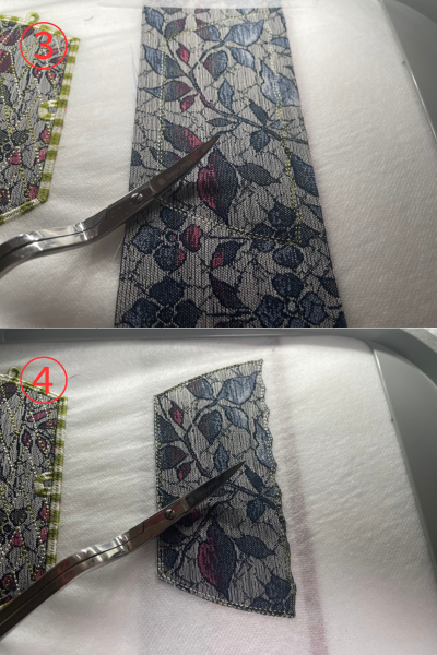 ③④余分な生地をカット(上の生地下の生地)