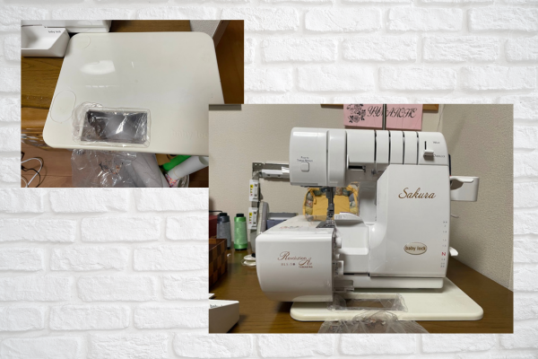 ロックミシンを机の前の方に置いて