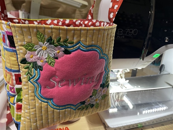 ⑤表生地に持ち手を付ける。