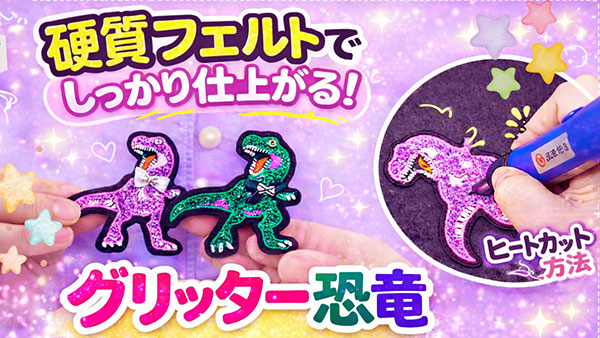 硬質フェルトでしっかり仕上がる!グリッター恐竜刺繍のヒートカット方法