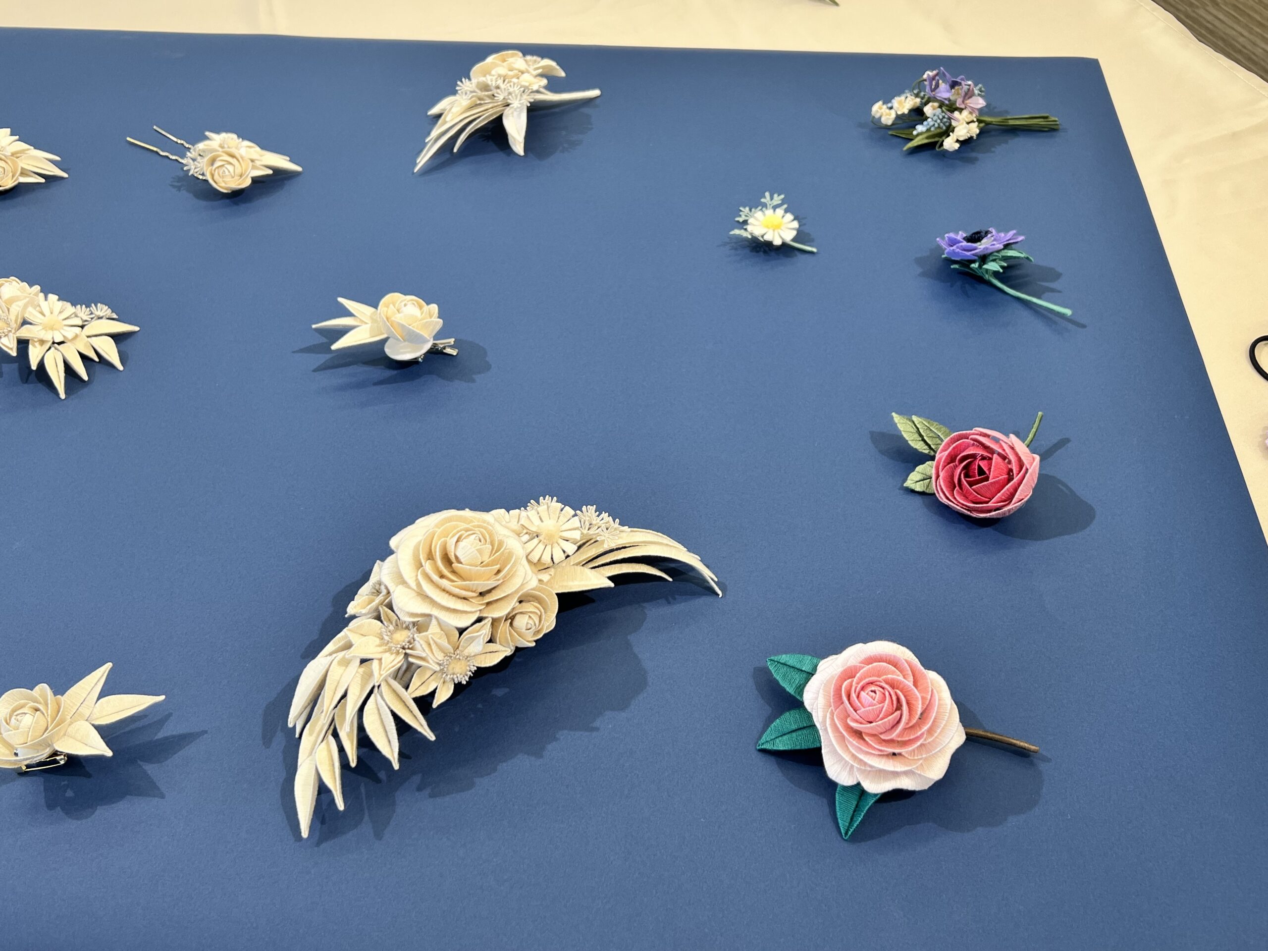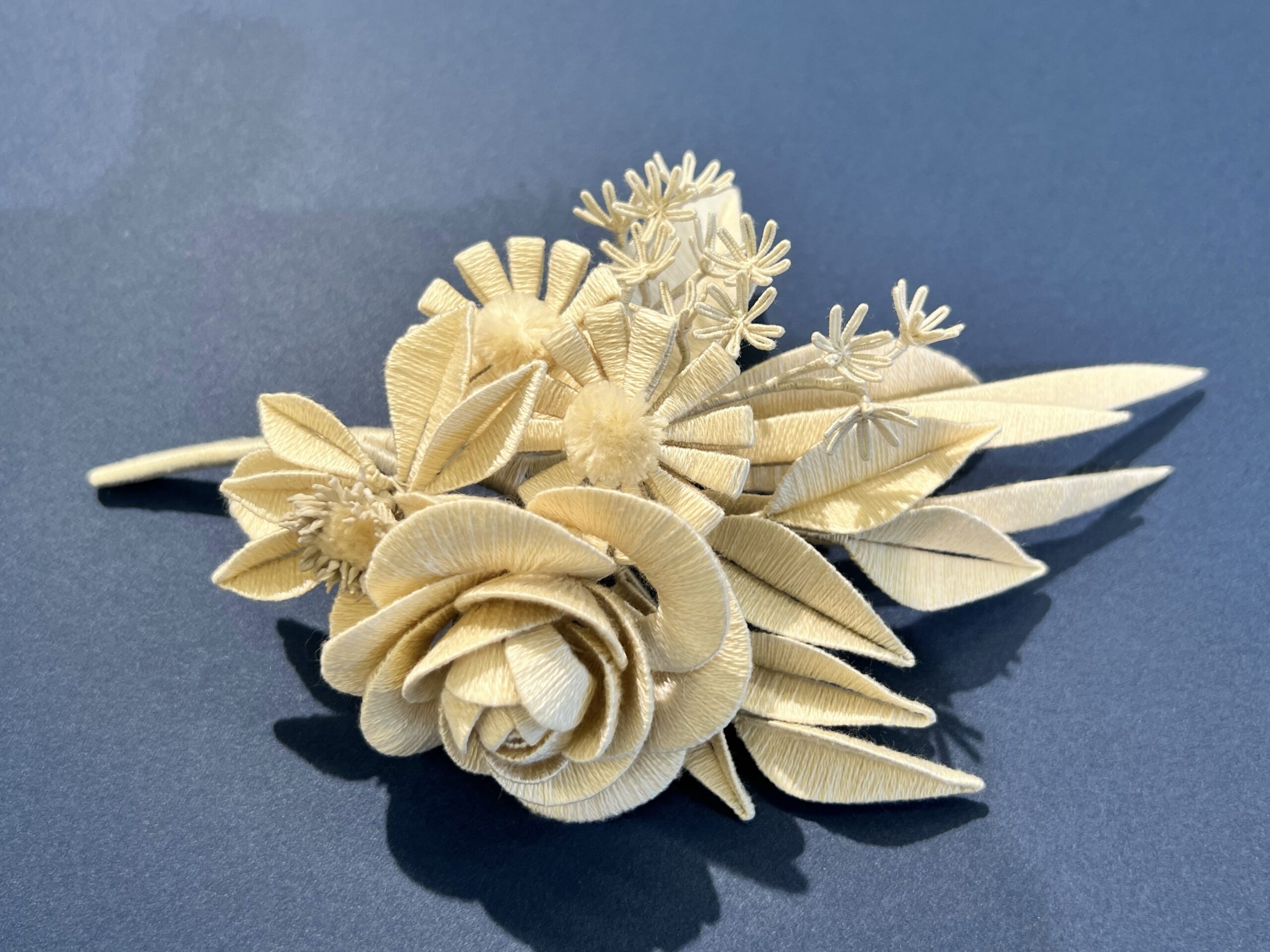 白バラのモチーフが美しいブローチを制作します。