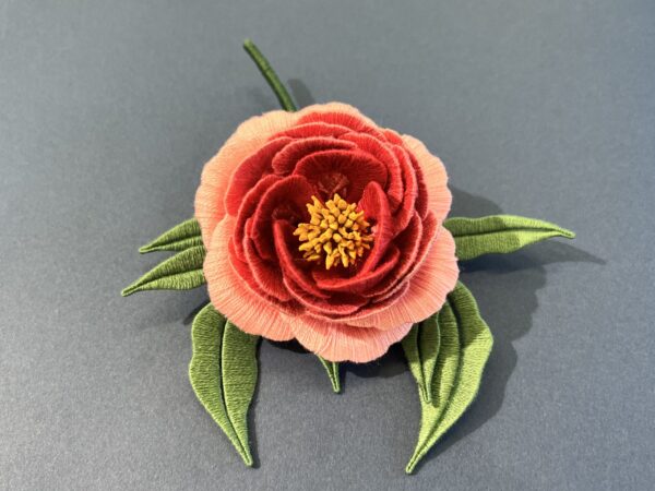 サテン刺繍やラインステッチで刺繍糸を重ねて刺繍していきます。